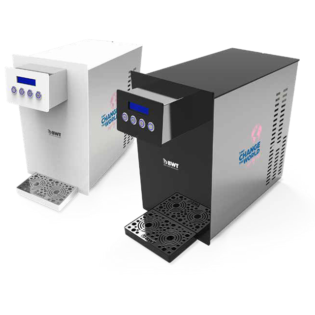 Todos los modelos pueden dispensar 2 porciones de tres tipos diferentes de agua, gracias al sistema de control de porciones. Es posible combinar las soluciones de mineralización y filtración de bebidas AQA de BWT, para que disponga de agua rica en valiosos minerales. Además, se puede realizar una desinfección y limpieza periódicas utilizando el sistema EasyCare de BWT. Imagine su hogar, bar o restaurante libre de botellas de plástico de un solo uso. Trabajemos juntos para eliminar los residuos plásticos y contribuir además a la reducción de las emisiones de CO2.